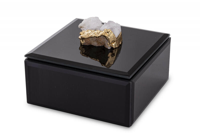 Hófehér üveg ékszeres doboz fekete béléssel, türkiz achát fogantyúval 8x19x16cm Az ékszerek tárolása soha nem volt még ennyire elegáns és stílusos, mint a hófehér üveg ékszeres doboz fekete béléssel, türkiz achát fogantyúval . Ez a kivételes darab nemcsak praktikus kiegészítő, hanem egy igazi műalkotás, amely bármely enteriőrben megállja a helyét. Az ékszeres do