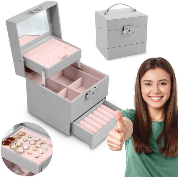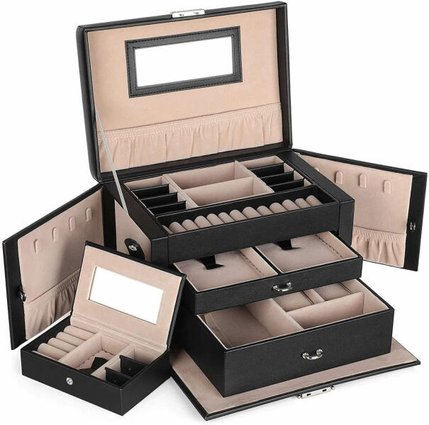 Az ékszerdoboz Kényelmes és funkcionális: zárható, könnyű, praktikus (könnyen tárolható) hordozófogantyú, a záró funkció megakadályozza a véletlen nyitást. Stílusos: gyönyörű szín és modern forma, ideális felnőtt nők és tizenévesek számára egyaránt, gondosan kidolgozott. Prémium minőség: strapabíró anyagokból készült, nagy szilárdságú, kopásálló PU ö