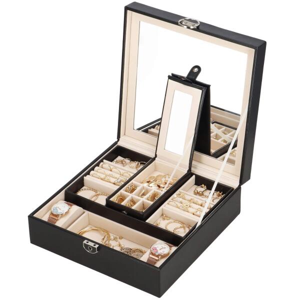 - A doboz biztosítja az ékszerek biztonságos tárolását otthon vagy utazás közben. - Kivehető elválasztók az egyedi illeszkedés érdekében. - Belseje textil anyaggal bélelt. - Cipzárral zárható modell. - Különböző méretű rekeszek fülbevalók, gyűrűk, nyakláncok, karkötők vagy egyéb apróságok tárolására. - A modell kellemes tapintású bársony anyagból készült.