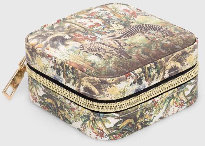 - A doboz biztosítja az ékszerek biztonságos tárolását otthon vagy utazás közben. - Kivehető elválasztók az egyedi illeszkedés érdekében. - Belseje puha textil anyaggal bélelt. - Cipzárral zárható modell. - Különböző méretű rekeszek fülbevalók, gyűrűk, nyakláncok, karkötők vagy egyéb apróságok tárolására. - Mintás anyag: - Minta növényi és állati motívumo