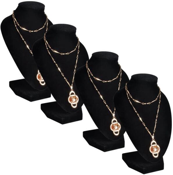Ez az elegáns flanel ékszer tartó bemutatja a klasszikus és az időtlen stílust. Úgy tervezték, hogy bemutassa és megőrizze nyakláncok, medálok és láncok. Ez tartós MDF bázis biztosítja a ékszerek stabilan a kijelzőn tartva. Ezzel az elegáns nyaklánc mellszoboral kéznél, képesek kiszorítani a nyakláncok, medálok és láncok jól kirakatokban vagy kézműves vásárokon. E
