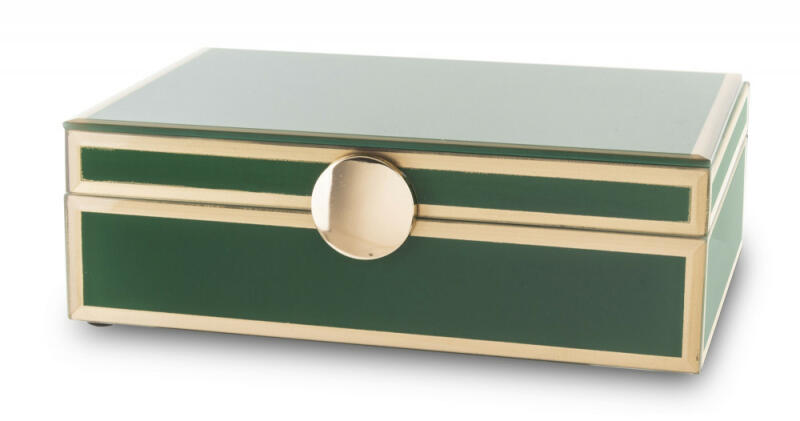 Ékszeres doboz HA1042Alapvető jellemzők:anyag: öko bőr + velúr + MDFtok színe: palack zöld, aranybelső szín: világos krémszarvasbőr bőrönd belsejerögzítés típusa: mágnesesextra: nagy ablakA bőrönd belsejében:4 rekesz 6,5x4cm13x6cm-es gyűrűs rekeszeknagy rekesz 13x7cmMéretek:23,5cmmagasság: 5,5 cmmélység: 14 cm