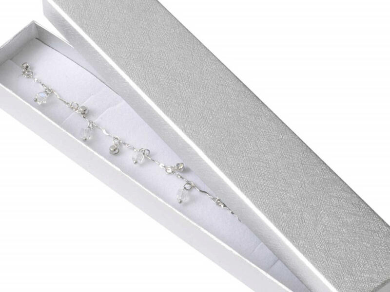 Méretek: 46 x 208 x 22 mm ezüst színű karlánc, karkötő, nyaklánc ajándékdoboz, díszdoboz anyaga papír belseje fehér plüss bevonatú szivacs Az ár nem tartalmazza az ékszert!