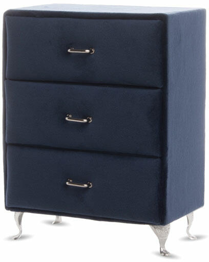 Tökéletesen működő, 3 fiókos szekrény formájú ékszertartó bársony borítással. A bársony borítású 3 fiókos ékszertartó mérete: 19,5x15x9,5cm