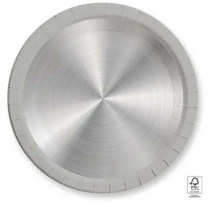 Silver, Ezüst papírtányér 8 db-os 23 cm FSCAnyaga: papírMéret: 23 cm8 db tányér/csomagFSC (Forest Stewardship Council) Silver, Ezüst papírtányér 8 db-os 23 cm FSCAnyaga: papírMéret: 23 cm8 db tányér/csomagFSC (Forest Stewardship Council)