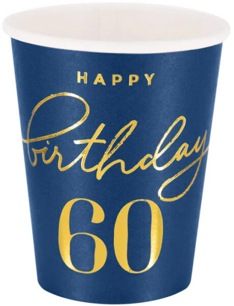 Papírpohár, arany, 40. születésnap felirattal. Mérete: 220 ml. Anyaga: papír. 6 db pohár/csomag.