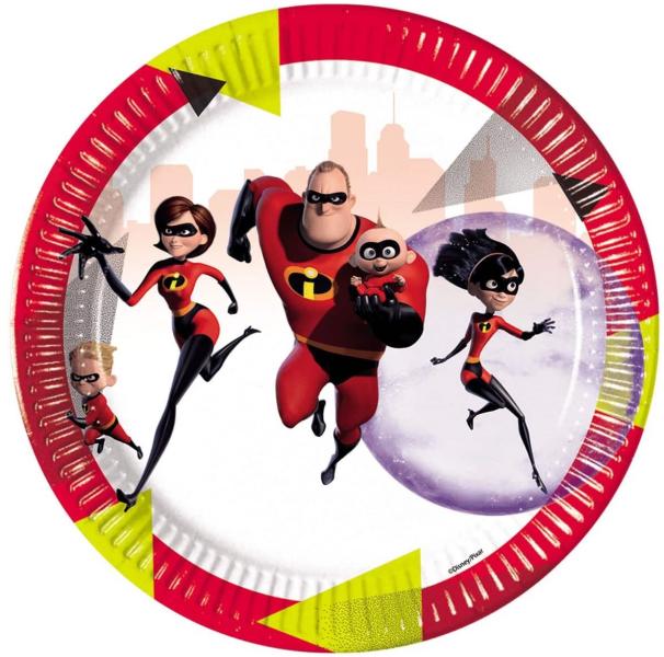 Party Tányérok Hihetetlen család 2 -Minden ünnepségen terítéknek is kell lennie. Ezek a tányérok megfelelnek a születésnapi partikra és más alkalmakra. Nemcsak a gyerekek arcára csal mosolyt, hanem a vendégekére is. Minden ünnepet feldob, legyen szó születésnapról, vagy kerti partyról.