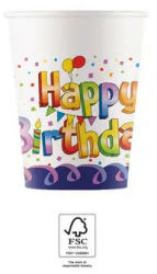 Multicolor Happy Birthday Papír pohár 200 ml 8 db pohár/csomag Anyaga: papír FSC (Forest Stewardship Council)