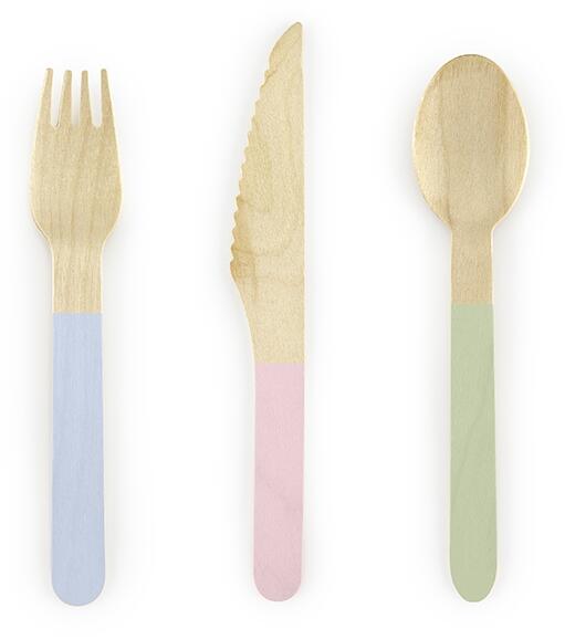 Pasztell fa evőeszközök 6 db mennyiség: 6 x kanál, 6 x villa, 6 x kés méret: 16 cm