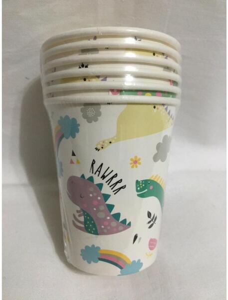 2 dl-es, fehér alapon különböző dinoszaurusz mintás papír pohár. Az ár 1 csomag (6 db) papírpohárra vonatkozik!