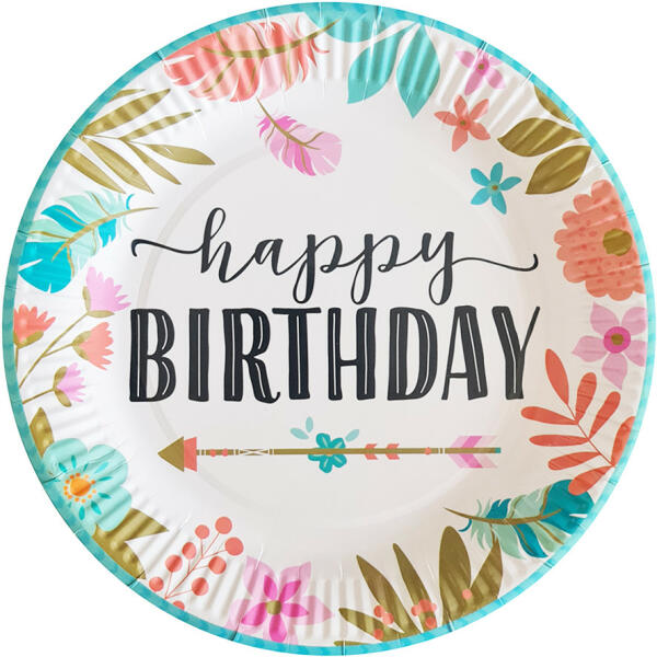 10 darabos Happy Birthday feliratú virág mintás papír tányér , melynek a segítségével minden kislány party-jára egy igazán különleges világot varázsolhatunk. Tulajdonságok: Anyaga: papír A papír tányér átmérője: 23 cm A csomagban 10 darab azonos mintájú tányér található.
