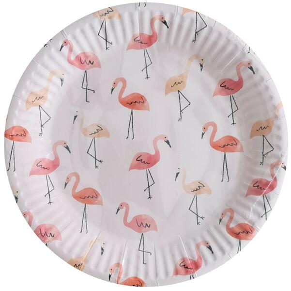 10 darabos flamingó mintájú papír tányér , melynek a segítségével minden egzotikus világ rajongónak egy igazán különleges születésnapi party-t tudunk varázsolni. Tulajdonságok: Anyaga: papír A papír tányér átmérője: 18 cm A csomagban 10 darab azonos mintájú tányér található.