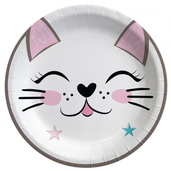 Cicafej mintás kerek papír tányér. 8 db/csomag. Méret: átmérő: 23 cm.