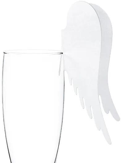Pohár dekoráció - Angyali szárnyak 12.3 x 10.7 cm Papírból készült esküvői dekoráció angyali szárnyak, ideális üveg poharakra. készült : papírból méret : 12,3 x 10,7 cm mennyiség : 10 db/ 1 csomagban szín : fehér
