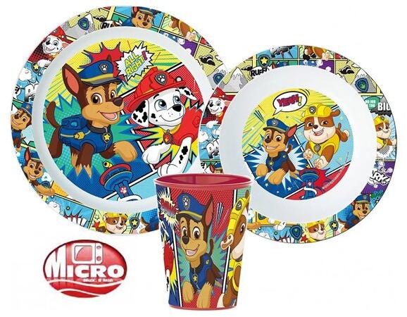 Mancs Őrjárat étkészlet, micro műanyag szett pohárral 260 ml Chase a német juhász kölyök kutya nagyon szeret játszani, de csakis akkor, ha éppen nincs szolgálatban. Ő a Mancs őrjárat rendőre, aki figyel a forgalomra, és sok esetben ő az, aki a nyomába ered az elveszett állatoknak. Chase könnyen megismerhető, a kék egyenruhájáról és sapkájáról. Marshall a tűzoltó sp