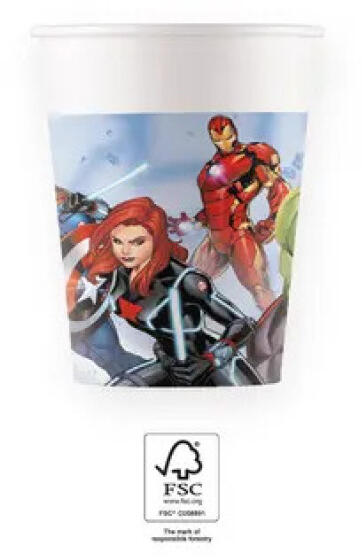 Avengers, Bosszúállók papír pohár 200 ml 8 db pohár/csomag Anyaga: papír FSC (Forest Stewardship Council)