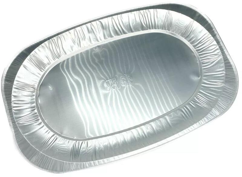Ovális alumínium tálca. Hideg- és melegtálak felszolgálására ovális alakú, 10 személy részére. A nagy alutálca egy kiváló minőségű, egyszerhasználatos, eldobható termék, amely ideális választás minden olyan helyzetben, amikor nagy mennyiségű ételt kell szervírozni egyszerre, például bulikon, esküvőkön vagy más rendezvényeken. Az alutálca nagyon könnyű, ami az