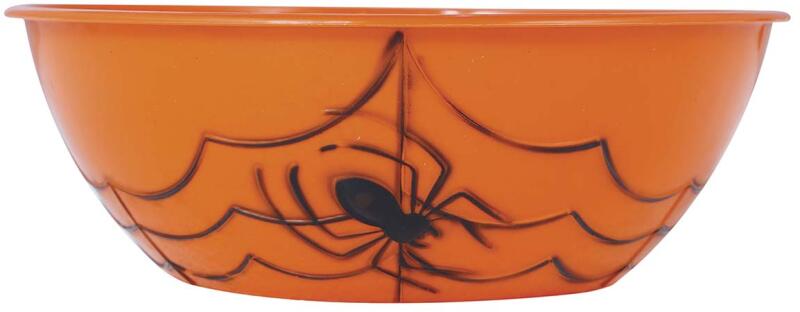 Halloweenes tál narancs színű Dobja fel a halloween partit ezzel a félelmetes tállal édességre pók mintával. A tálat többször is fel lehet használni. darab: 1 drb méret: 27 x 9 cm anyag : plaszt