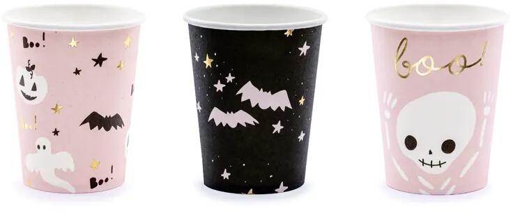 Papír poharak - Halloween Boo ! Az új elérhető anyagoknak és folyamatoknak köszönhetően remek egyszeri használatú termékek, amelyek komposztálhatók ! Minden ünnepség része a party teríték, ezek a poharak illenek minden gyerek halloweeni partira. darab : 6 drb térfogat : 220 ml