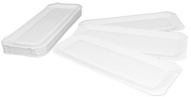 Papírtálcák minőségi anyagból. Fehér színű számos méretben és formában, egyenes vagy hajlított széllel. Papírtálcáink alkalmasak hideg illetve meleg ételek, desszertek szendvicsek, kolbászok felszolgálásra. Ideális választás lehet büfék, cukrászdák, street food-osok, és számos más területen történő használathoz. Ezek a könnyű, de formájukat megtartó papírt