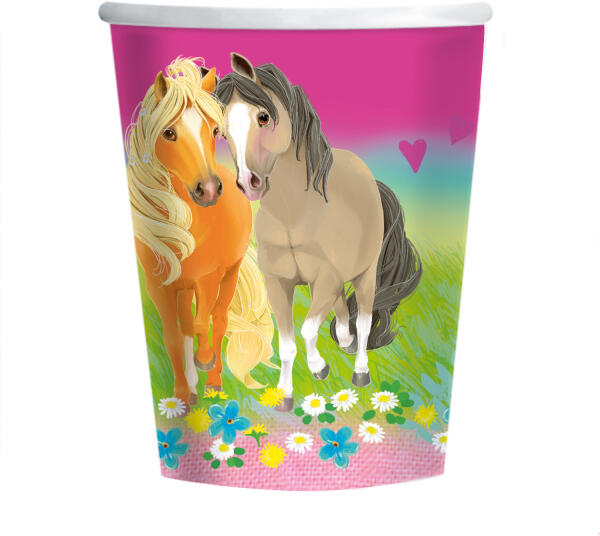 Papír poharak - Gyönyörű lovak 8 db Minden ünnepséghez hozzá tartozik az étel, ahoz pedig a hozzá illő teríték . Ezek a poharak Lovacskák motívummal alkalmasak gyerek partira , születésnapi partira vagy más ünnepségre ebben a témában. mennyiség : 8 db / 1 csomagban térfogat : 250 ml anyag : papír