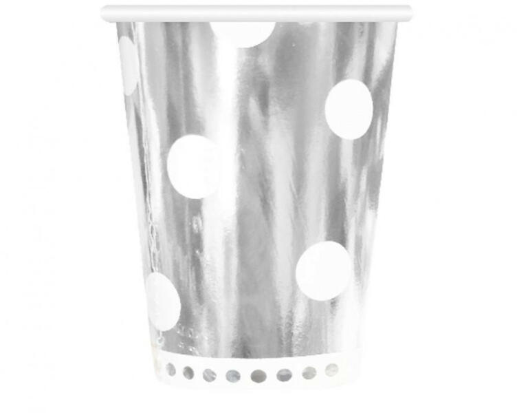 B&C Polka Dots Silver, Ezüst papír pohár 6 db-os 266 ml 6 db pohár/csomag Űrtartalom: 266 ml Anyaga: papír