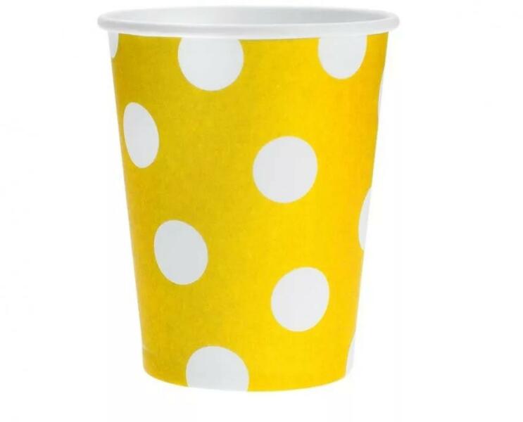 Yellow Polka Dots, Sárga papír pohár 6 db-os 270 ml 6 db pohár/csomag Űrtartalom: 270 ml Anyaga: papír