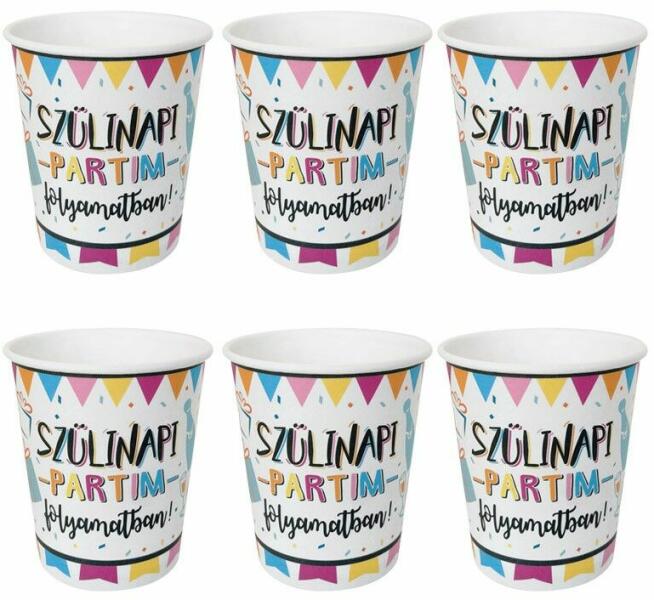 Vidám és trendi, Szülinapi Partim Folyamatban mintás pohár a tökéletes party dekoráció összeállításához. Keresd a hasonló grafikájú dekorációkat termékeink között Vidám és trendi, Szülinapi Partim Folyamatban mintás pohár a tökéletes party dekoráció összeállításához. Keresd a hasonló grafikájú dekorációkat termékeink között Mérete: 250 ml. Anyaga: papí