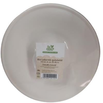 Gulyás tányér, PLA, lebomló, 710 ml, 21 cm, 20 db, fehér Biológiailag lebomló kukoricakeményítőből készült termék. -anyaga: PLA (kukoricakeményítő) -lebomló, komposztálható -átmérő: 21 cm -űrtartalom: 710 ml -kiszerelés: 20 db/csomagAlcsoportPLA tányér