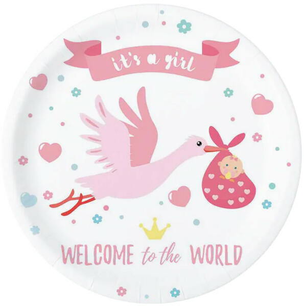 Egy baba születése az egyik legnagyobb öröm egy család életében. Ennek a rózsaszín színű tányér szettnek a segítségével pedig Te is egyszerűen tudsz vidámságot varázsolni a babaváró bulira és meglepni mindenkit egy igazán bájos dekorációval. Tulajdonságok: Anyaga: papír A papír tányér mérete: 18 cm A csomag tartalma 6 darab azonos mintájú papír tányér.
