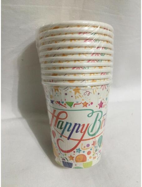 8,5 cm magas, 7 cm átmérőjű, 2 dl-es papír pohár lufis, csillagos mintával és Happy birthday felirattal. Az ár 1 csomag (10 db) papírpohárra vonatkozik!