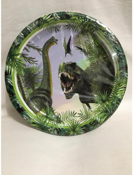 23 cm átmérőjű, dinoszaurusz mintás papír tányér. Az ár 1 csomag (8 db) tányérra vonatkozik!