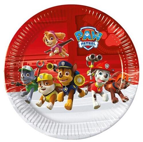 Paw Patrol, Skye, Chase, Marshall, Rubble, Zuma és Rocky mintás papírtányér Minden szülinapi buli, party, egyik legfontosabb kelléke a papírtányér. Fogyaszd a szülinapi tortádat a kedvenc mesehősös papírtányérról. A csomag 8 db papírtányért tartalmaz! Méretei: 23 x 23 cm. Anyaga: papír