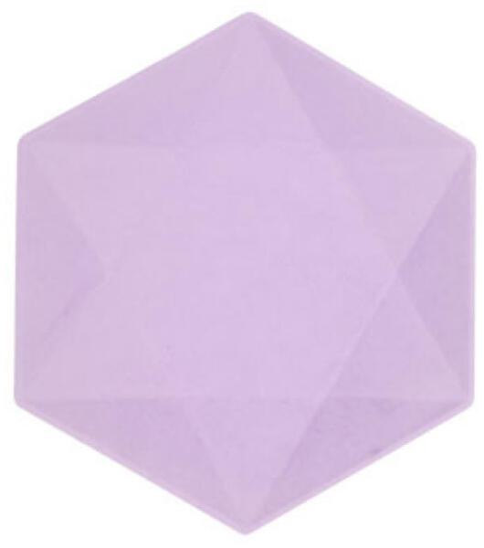Lila Vert Decor hatszögletű lapostányér 6 db-os Anyaga: 77% cukornád + 9% bambusz + 4% AKD + víz Nem tartalmaz műanyagot. Átmérő: 15,8x13,7 cm