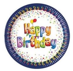 Multicolor Happy Birthday Papírtányér 8 db-os 19,5 cm FSC 8 db tányér/csomag Anyaga: papír FSC Forest Stewardship Council
