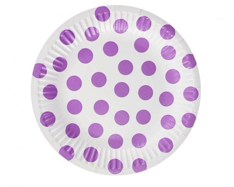 Lavender Polka Dot, Pöttyös papírtányér 6 db-os 6 db tányér/csomag Méret: 18 cm Anyaga: papír