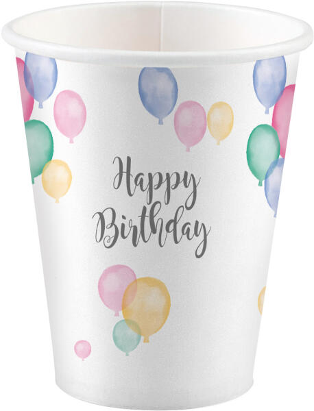 Poharak- Happy Birthday pasztell lufik Minden ünnepségen kell hogy legyen valamilyen étel, melyhez teríték is szükséges. Ezek a poharak gyerek zsúrra , születésnapi partyra vagy tematikus partyra alkalmasak. mennyiség : 8 db térfogat : 250 ml