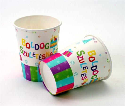 "Boldog születésnapot" felirattal papír alapanyag a pohár űrtartalom: 2,5 dl