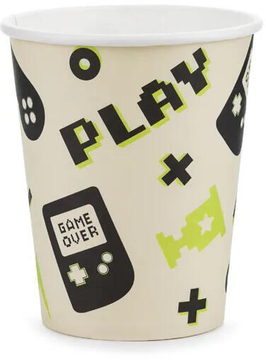 Önts egy kis szórakozást minden kortyba ezekkel a Gamer mintás papírpoharakkal! Ez a különleges készlet színes poharakat tartalmaz, melyek körülbelül 220 ml. folyadékot képesek befogadni. Ezek a poharak nemcsak praktikusak, de stílusosak is, és vidám hangulatot kölcsönöznek bármilyen összejövetelnek vagy bulinak. Ne hagyd ki ezt a fantasztikus lehetőséget, hogy különlege