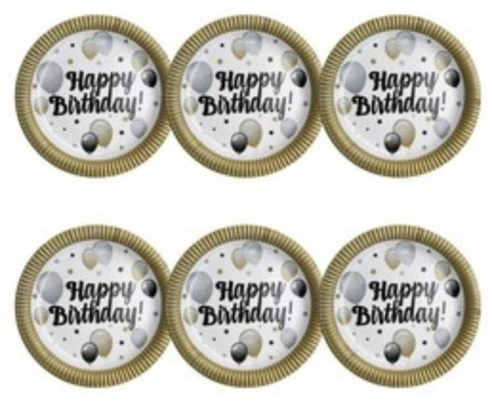 Születésnapi eldobható papírtányér. A tányéron "Happy Birthday" felirat hirdeti, hogy születésnapi buli folyik éppen, ezért tömni kell mindenki szájába a csokitortát. Születésnapi eldobható papírtányér. A tányéron "Happy Birthday" felirat hirdeti, hogy születésnapi buli folyik éppen, ezért tömni kell mindenki szájába a csokitortát. Mérete: 23 cm. Anyaga: papír. 6
