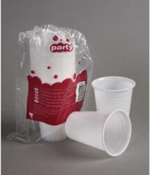 Praktikus kiegészítője partiknak, házibuliknak, családi összejöveteleknek, kültéri rendezvényeknek, céges rendezvényeknek. Műanyag fehér party pohár 2dl 20 db/cs. Egyszer használatos/eldobható műanyag pohár. Kalibrált. Anyag: poliprpilén Olvadáspont: 160C Szín: fehér Súly: 2,3g Magasság: 98mm Átmérő(felül/alul): 70mm/40mm Felhasználási terület: parti, buli, gyorsé