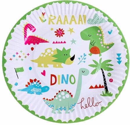 Dinoszaurusz mintás papírtányér cuki grafikával, ami a gyerekek és a dínókedvelő felnőttek nagyszerű partikiegészítője lehet. A csomag tartalma 10db 18cm ármérőjű papírtányér. Dinoszaurusz mintás papírtányér cuki grafikával, ami a gyerekek és a dínókedvelő felnőttek nagyszerű partikiegészítője lehet. A csomag tartalma 10db 18cm ármérőjű papírtányér. Anyaga