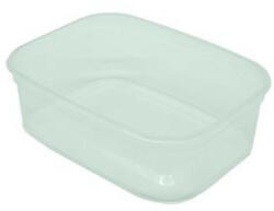 Leginkább könnyű ételek tárolására és szállítására alkalmas műanyag doboz, melynek teteje praktikusan visszahajtható és lezárható. Kiváló választás lehet cukrászdákban vagy üzemekben sós vagy édes sütemény csomagolásához, ennek segítségével a termék összenyomódás nélkül kerül az eladótól a vásárlóig. Szélesség: 9 cm Hossz: 9 cm