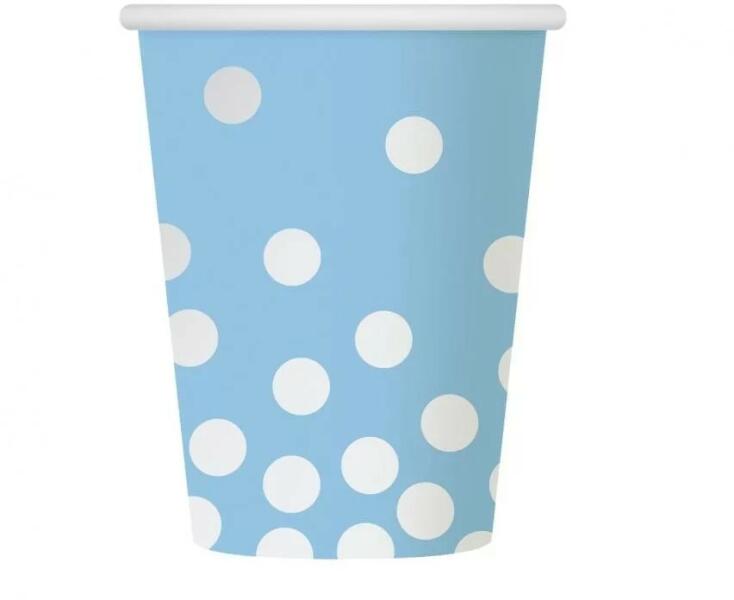 Silver Dots Blue, Pöttyös papír pohár 6 db-os 270 ml 6 db pohár/csomag Űrtartalom: 270 ml Anyaga: papír