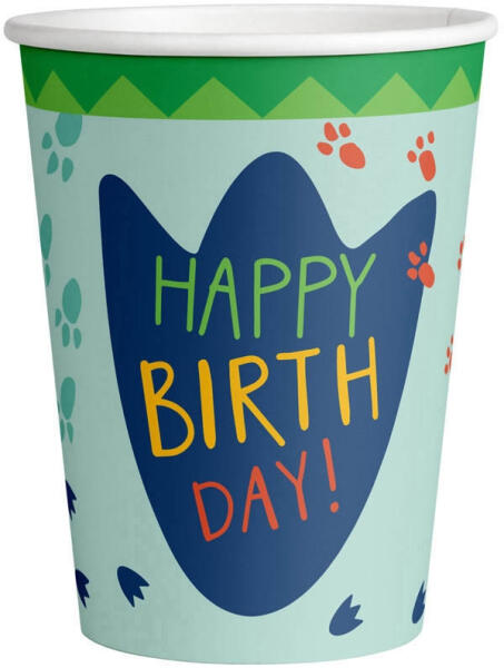 Dinosaur, Dinoszaurusz papír pohár 8 db-os 250 ml 8 db pohár/csomag Anyaga: papír