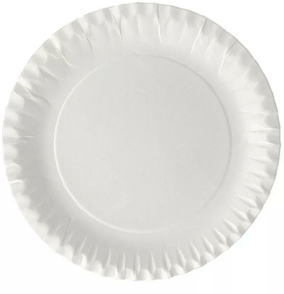 Jó minőségű kerek papírtányér. A kép csak illusztráció, a termék minimálisan eltérhet.