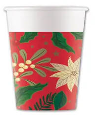 Holly Poinsettia, Karácsony Papír pohár 200 ml 8 db pohár/csomag Anyaga: papír FSC (Forest Stewardship Council)