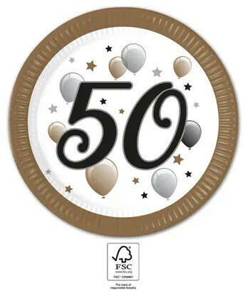 Happy Birthday 50 papírtányér 8 db-os 23 cm FSCAnyaga: papírMéret: 23 cm8 db tányér/csomagFSC (Forest Stewardship Council) Happy Birthday 50 papírtányér 8 db-os 23 cm FSCAnyaga: papírMéret: 23 cm8 db tányér/csomagFSC (Forest Stewardship Council)