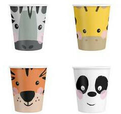 A csomag 1 db zsiráf-, 1 db panda-, 1 db tigris- és 1 db zebra poharat tartalmaz. Mérete: 220 ml. Anyaga: papír. 4 db pohár/csomag.