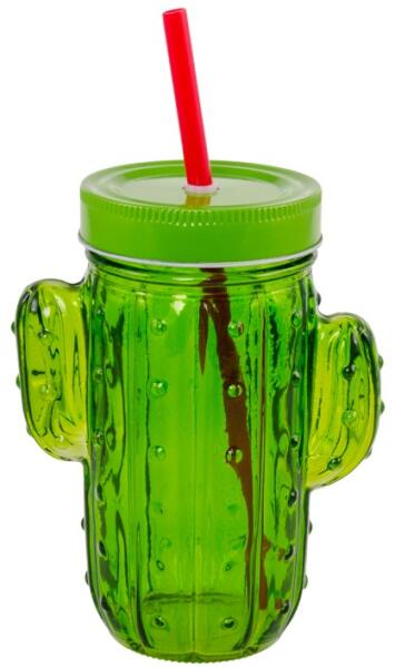 Üveg pohár szívószállal - Kaktusz 400ml A kaktusz alakú pohár vidám és praktikus kiegészítője frissítő italainak. Ideális nyári italokhoz, limonádékhoz vagy turmixokhoz. A fedélnek és az többszörösen használható szívószálnak köszönhetően segít megelőzni az ital kiömlését is. tartalom : 400 ml